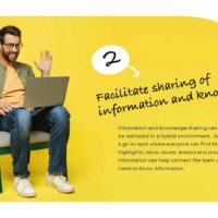 Information and knowledge sharing can at times be restricted in a hybrid environment. Setting up a go-to-spot where everyone can find the latest highlights, news, issues, lessons and progress information can help connect the team with key need-to-know information.