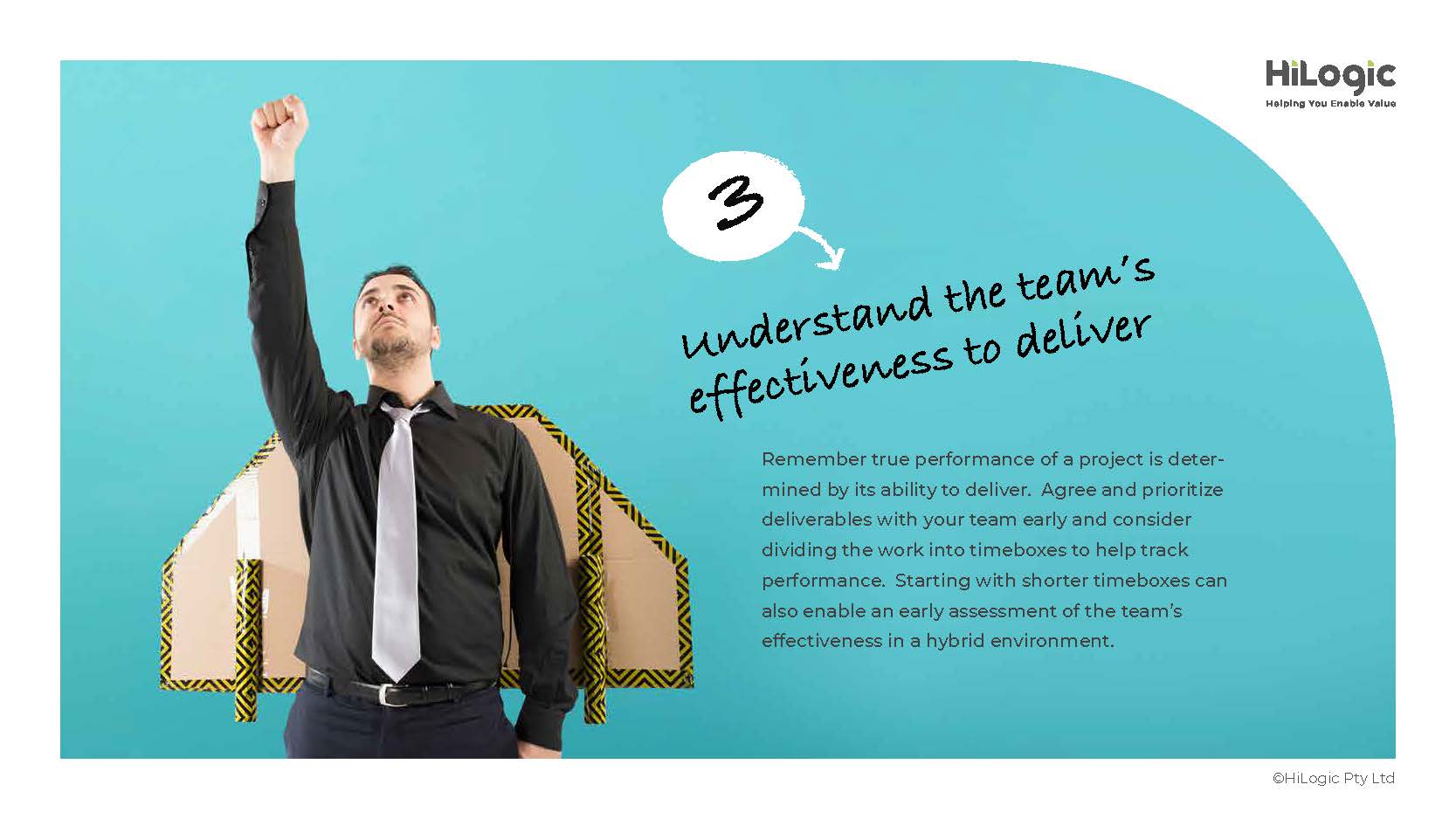 Remember true performance of a project is determined by its ability to deliver. Agree and prioritize deliverables with your team early and consider dividing the work into timeboxes to help track performance. Starting with shorter timeboxes can also enable an early assessment of the team’s effectiveness in a hybrid environment.