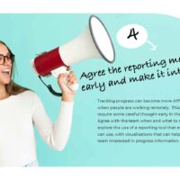 Tracking progress can become more difficult when people are working remotely. This will require some careful thought early in the project. Agree with the team when and what to report and explore the use of a reporting tool that everyone can use, with visualisations that can help keep the team interested in progress information