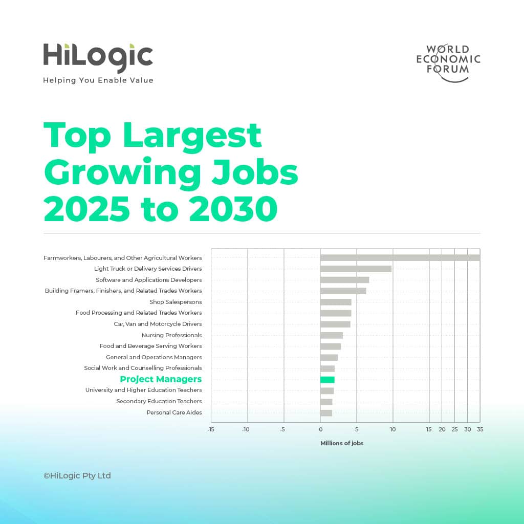 According to World Economic Forum – Future of Jobs Report​ 2025​, the role of Project Manager is projected to be one of the largest growing jobs globally between 2025 to 2030.​